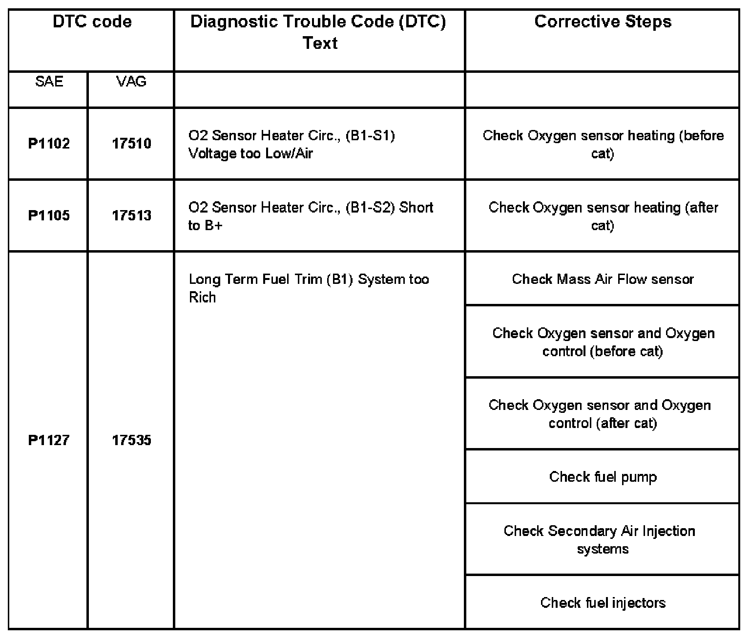DTC P1102 - P1127: