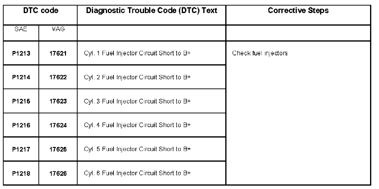 DTC P1213 - P1218: