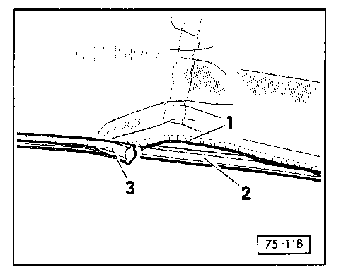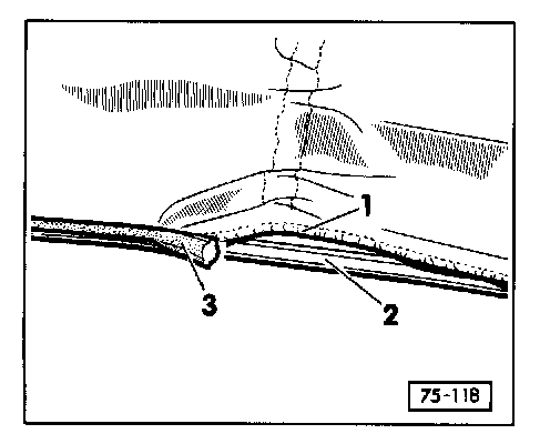 - Insert cord canvas -1- into lower rail -2- and press piping -3- into lower rail with help of auxiliary tool VAG 1474/5.