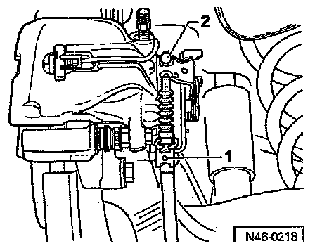 - Remove parking brake cable -2- from brake caliper.