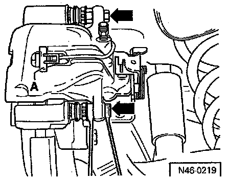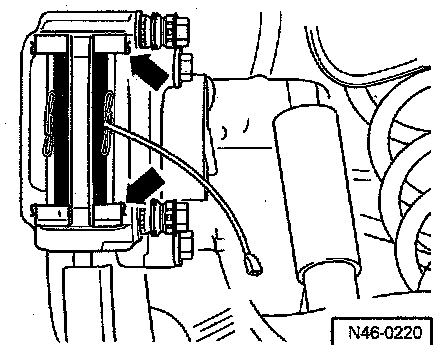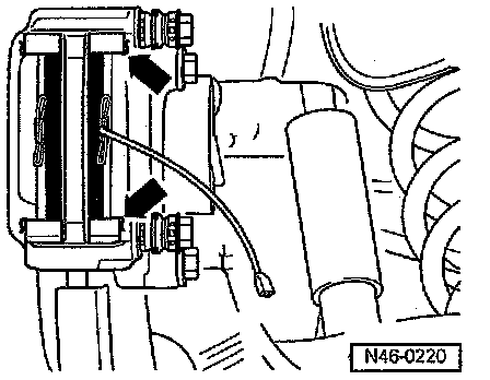 - Remove brake caliper housing securing bolts (arrows).