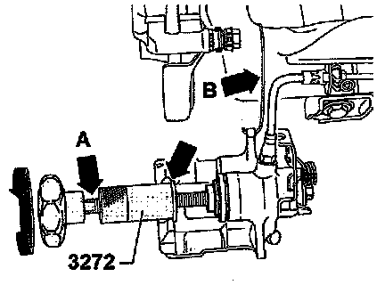 - Screw in piston by turning knurled wheel of special tool 3272 clockwise.