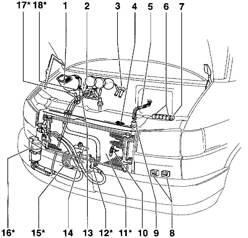 - System components identified with an * must only be serviced or replaced after discharging refrigerant system. Use Kent Moore (ACR)4 or equivalent.