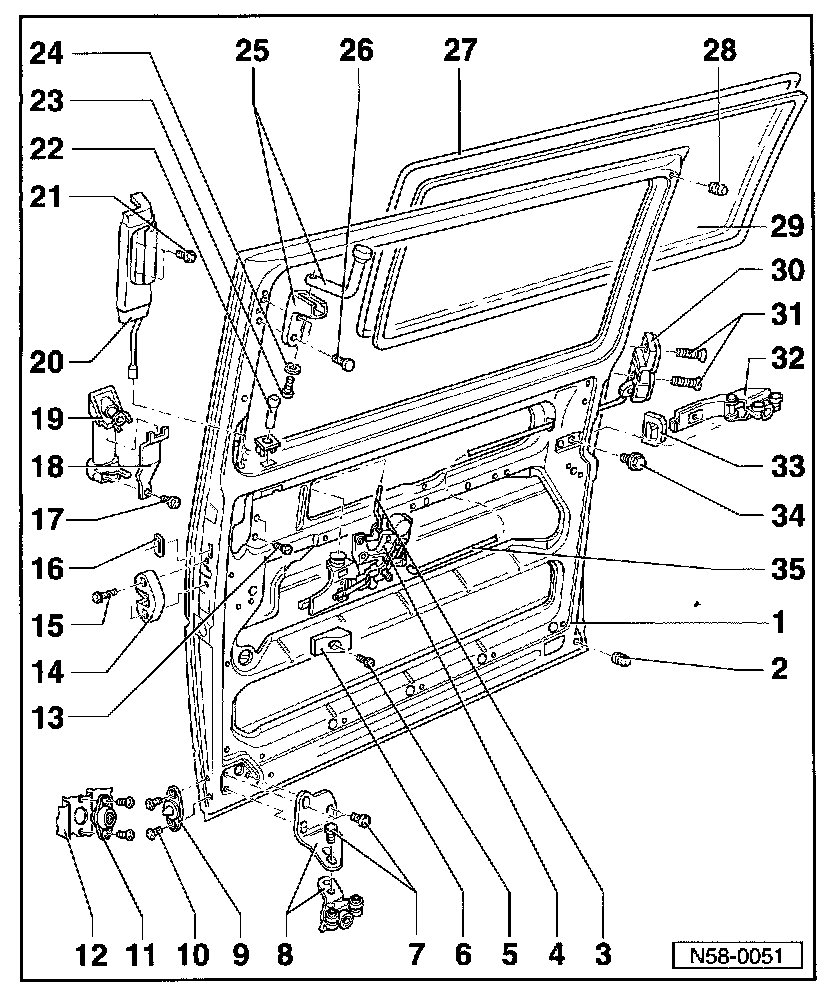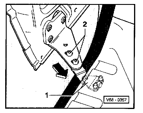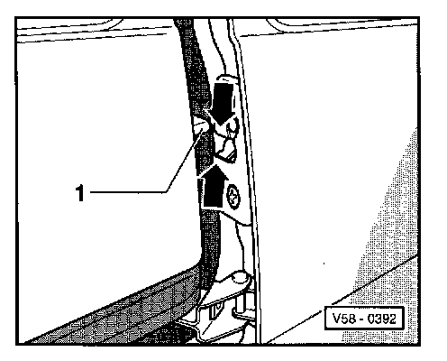 - Close sliding door, loosen hex bolts -1- from inside vehicle