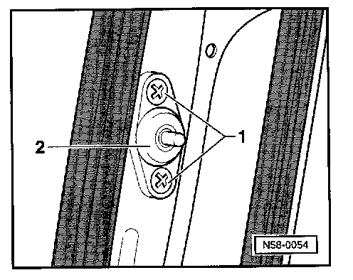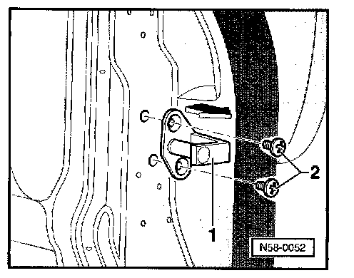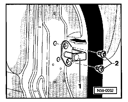 - Loosen latch striker -1- by loosening phillips screws -2-.