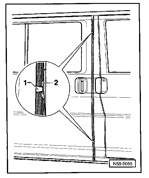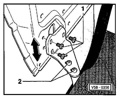 - Loosen screw -2- enough to adjust contour with outer B-pillar, then tighten both screws -2-.