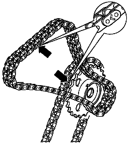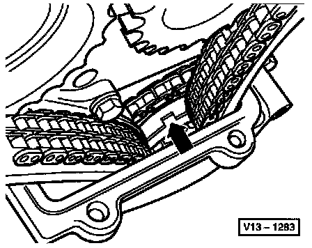 Only turn engine with chain tensioner installed! Otherwise the lower or upper chain will jump sprockets.