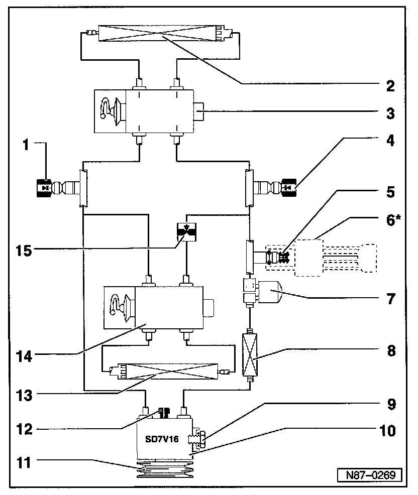 NOTE: Illustration shows Climatronic refrigerant circuit with second evaporator