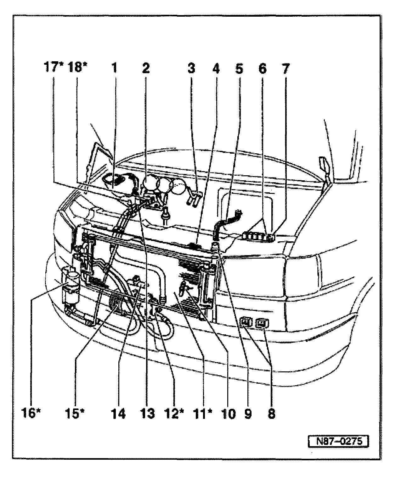 NOTE: System components identified with an *must only be serviced or replaced after discharging refrigerant system. Use Kent Moore ACR4 or equivalent.