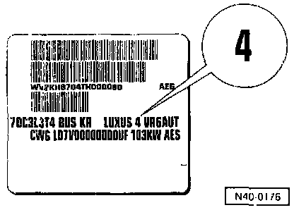 The word "LUXUS" on vehicle data plate is given as an example. It is possible that a different word, for example "Kom. " be printed at this point.