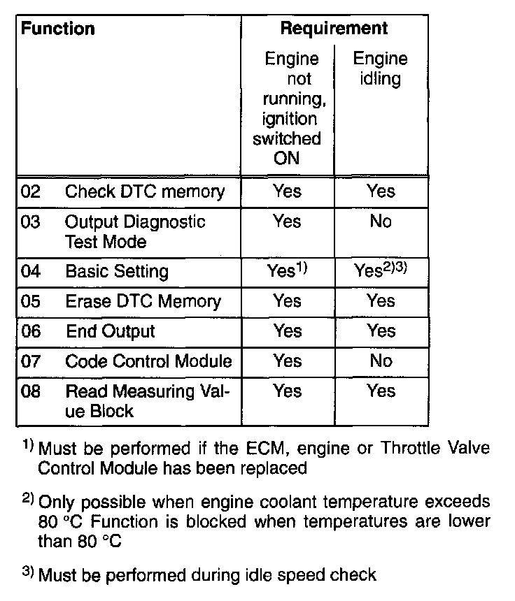 VAG 1551 Scan Tool, connecting and ECM selecting. See 'Testing and Inspection, Procedures, Address word 01.' Testing and Inspection