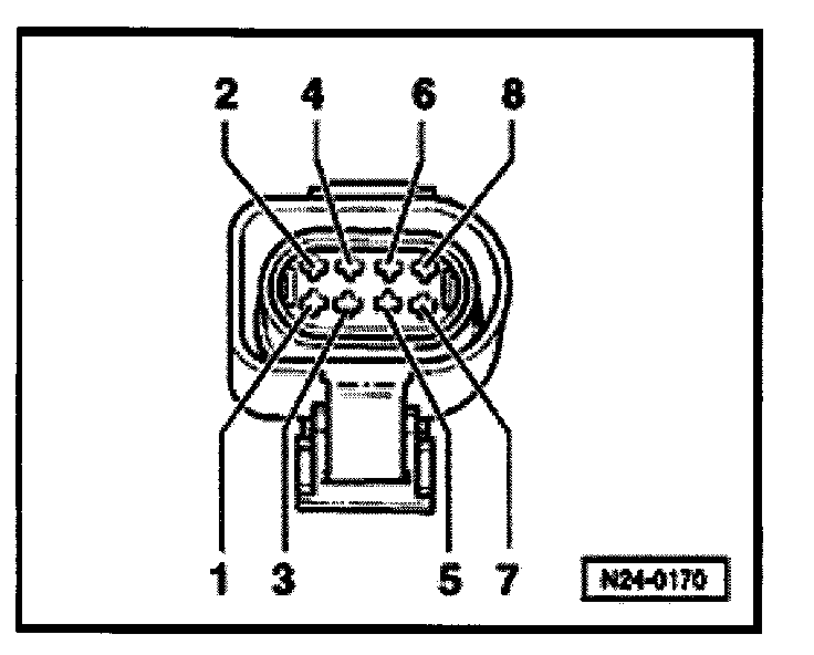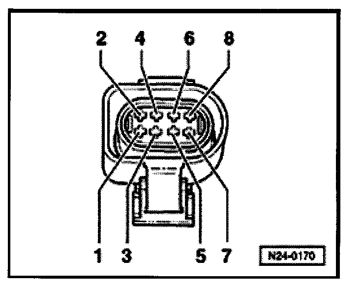 - Connect multimeter between harness connector terminals 3 + 7 using jumper wires from VW 1594 adapter kit