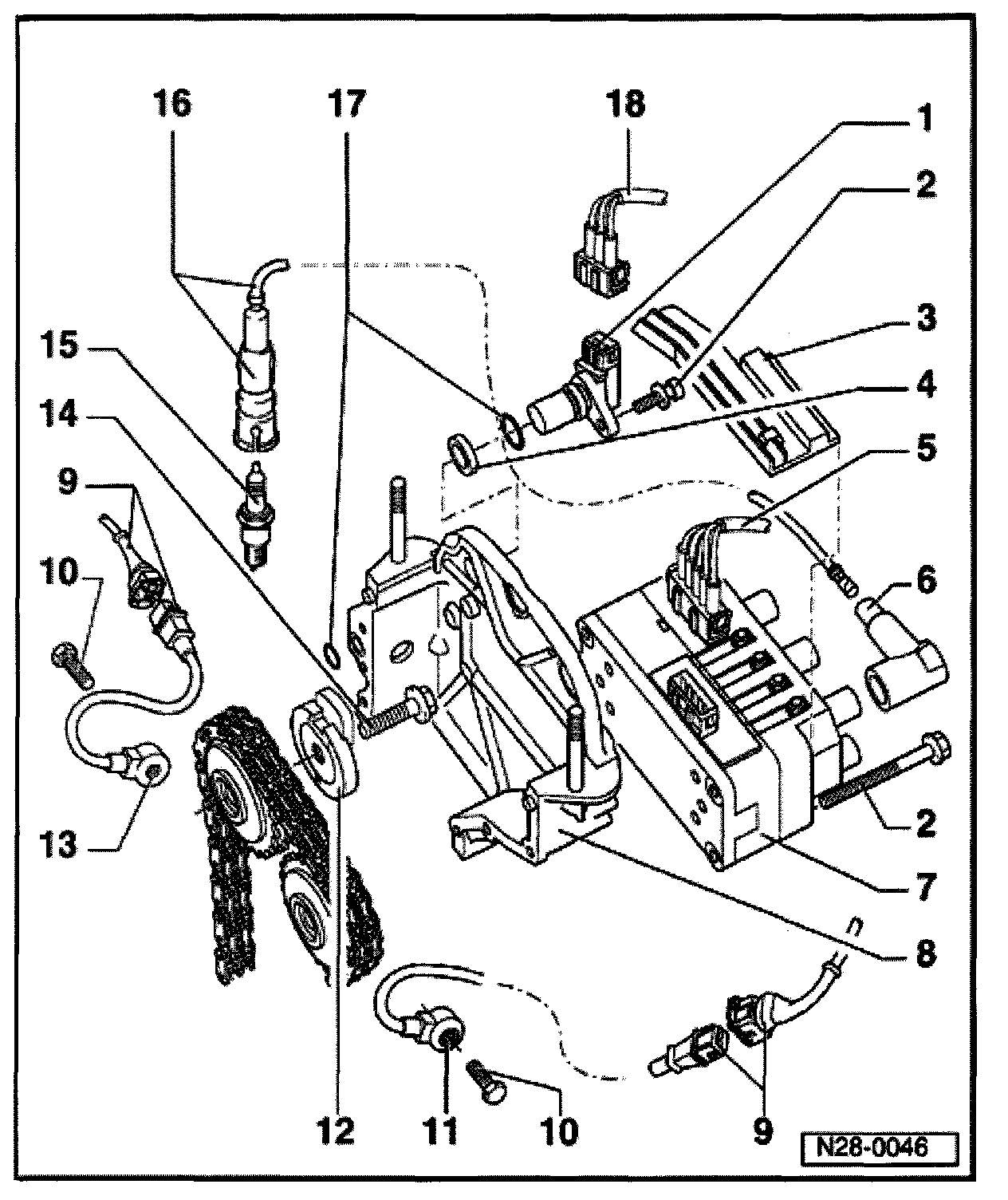 - For ignition coil -N152- (item 7)
