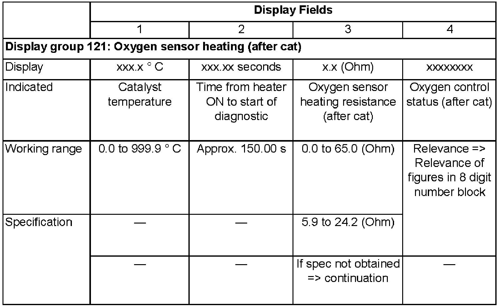 - Check resistance value for Oxygen sensor heater (after cat) (Display field 3)