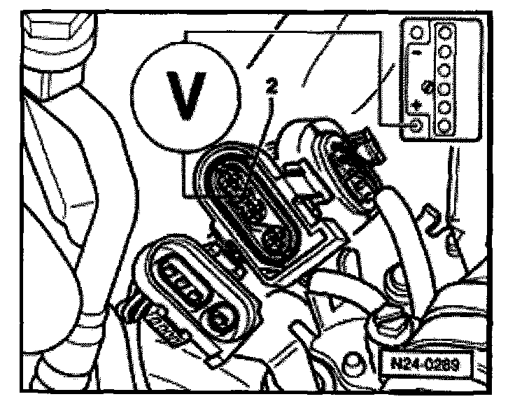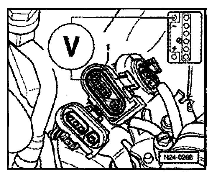 - Connect multimeter to terminals 1 + 2 on Oxygen sensor connector using jumper wires from VW 1594 adapter kit.