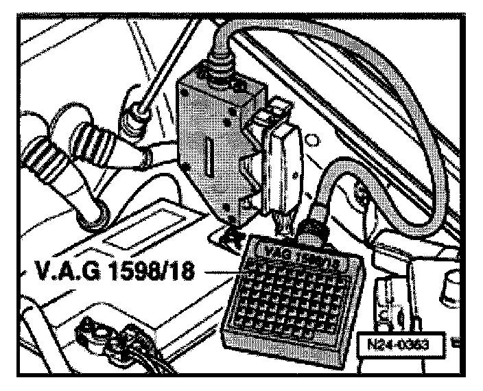 - Connect VAG 1598/18 Test Box to ECM wiring harness.