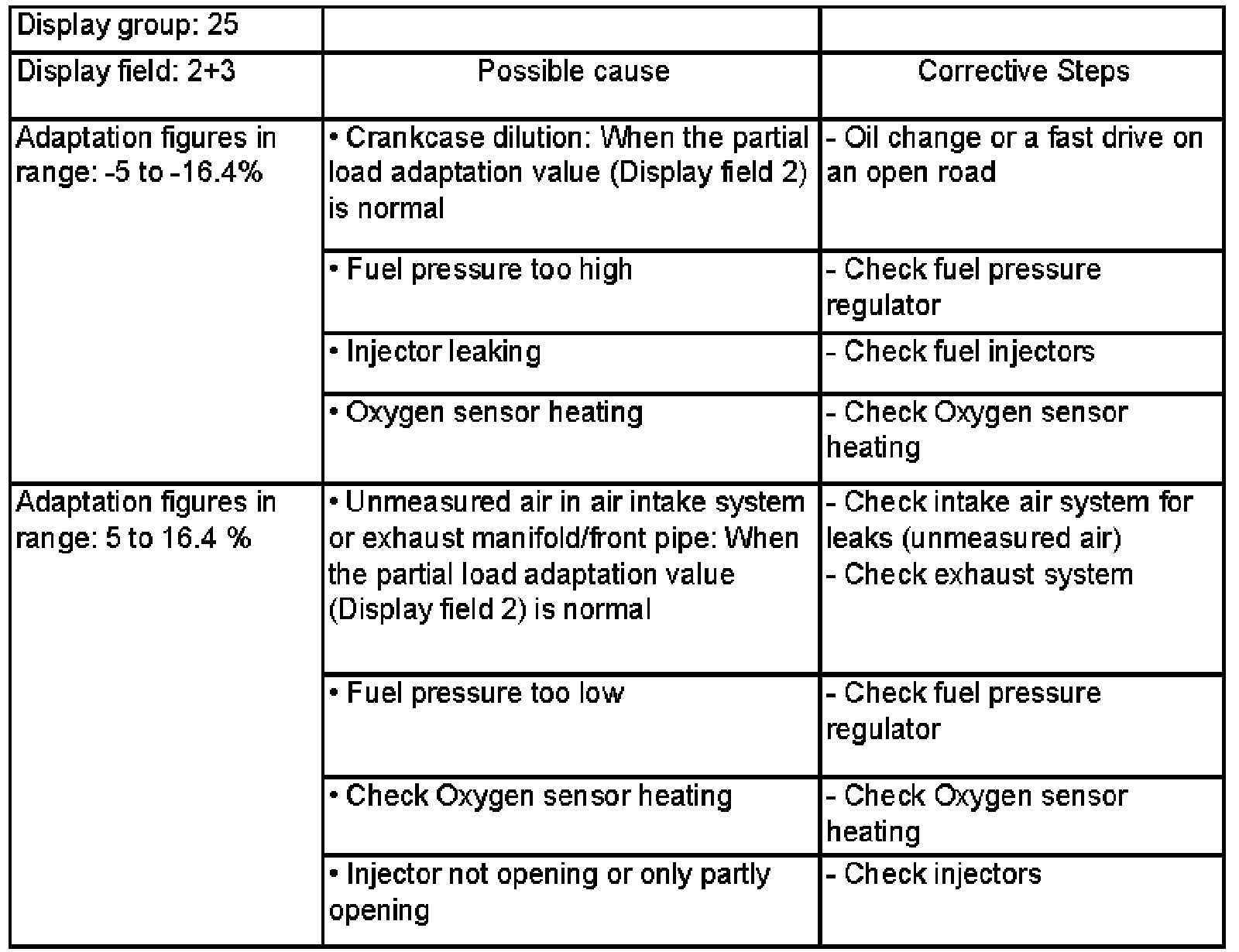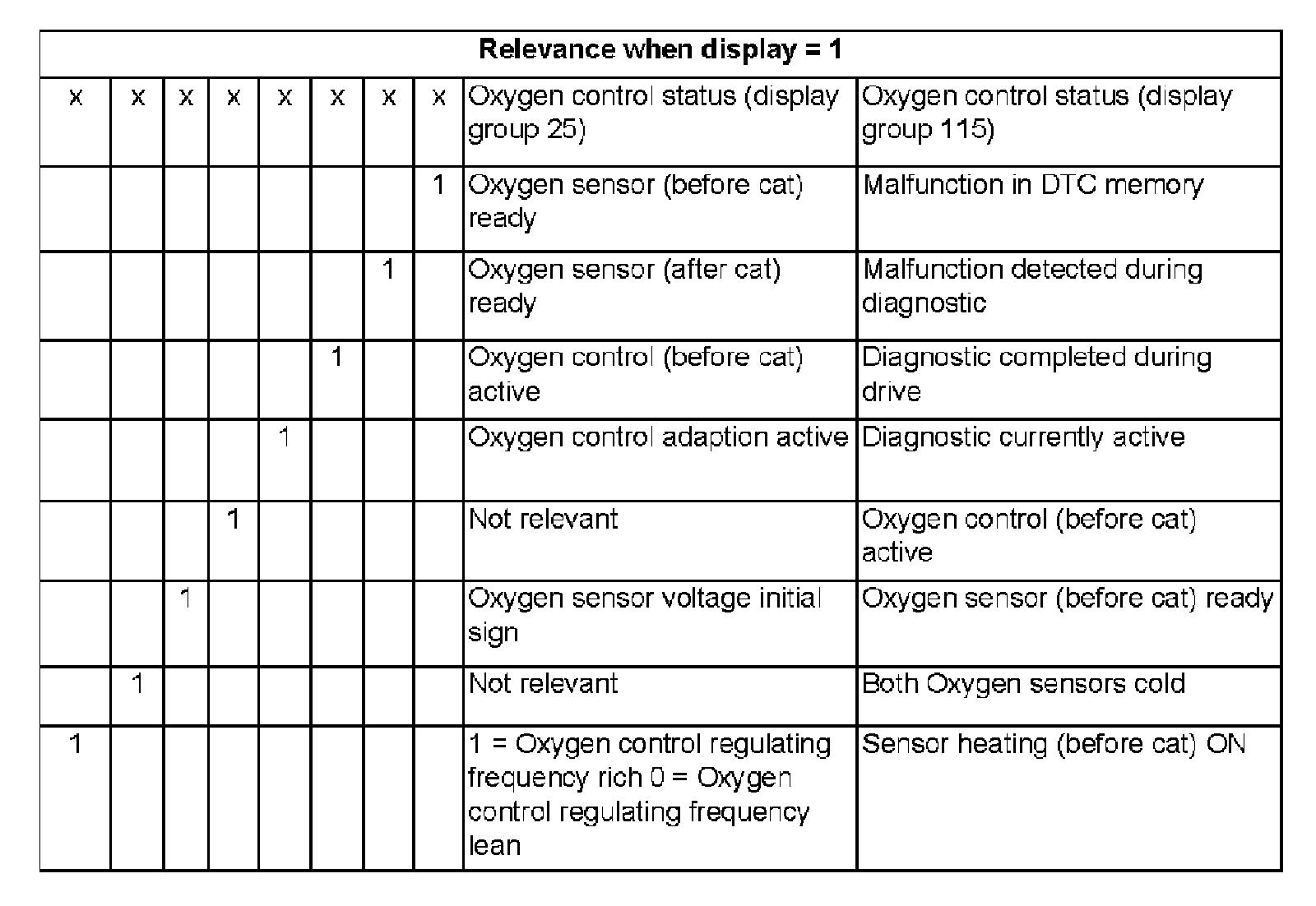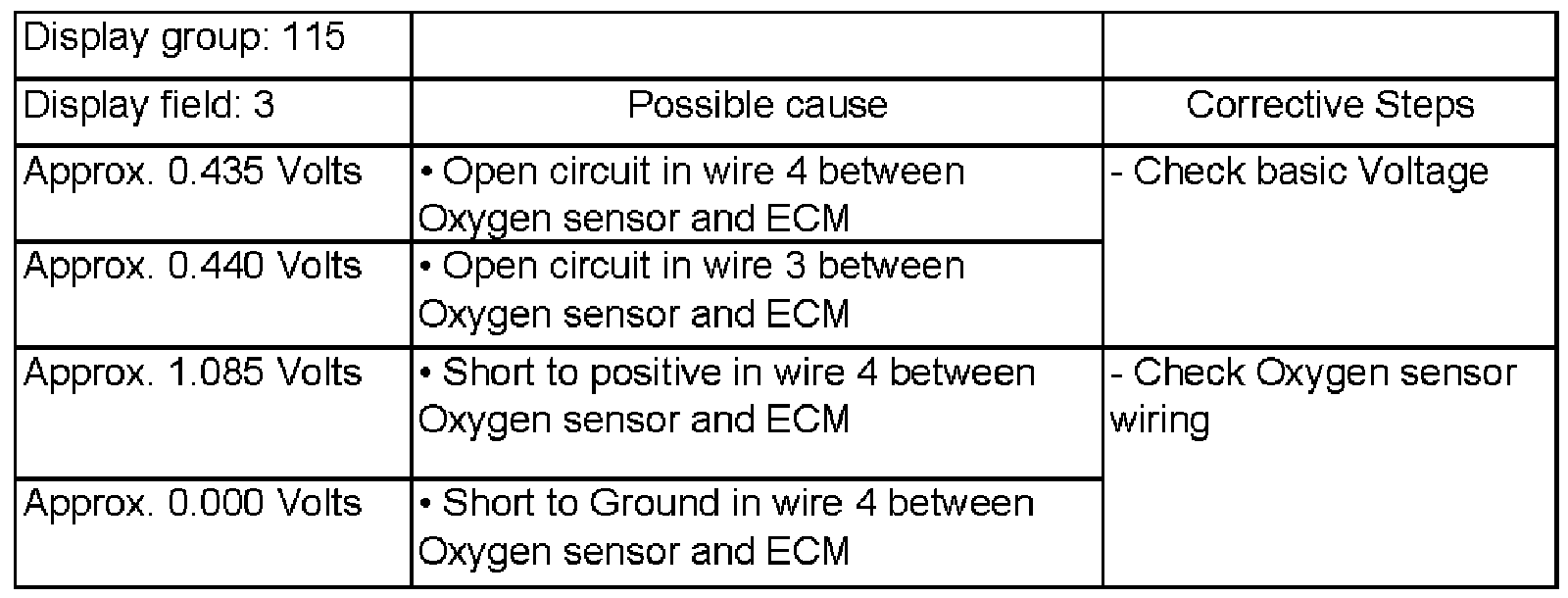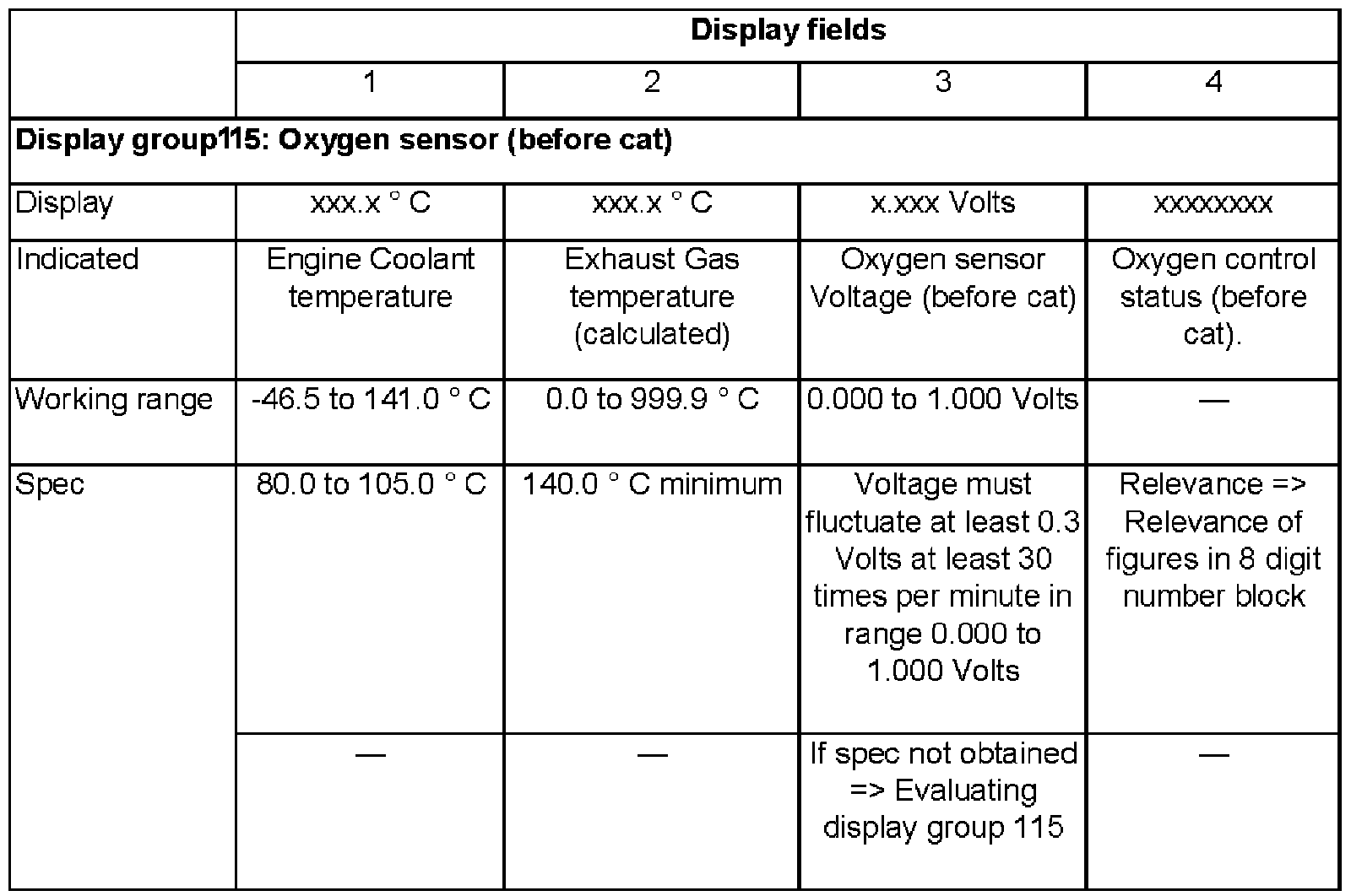 - Check Oxygen control Specifications (before cat). See Display fields 1 to 3