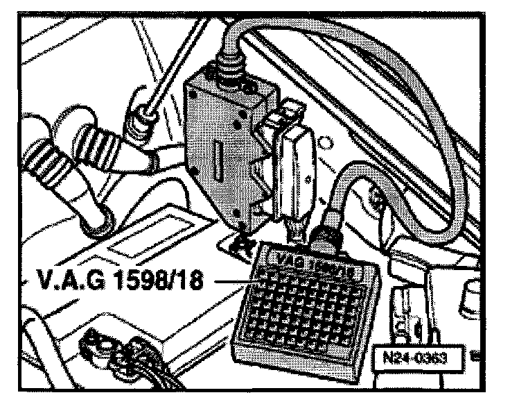 - Connect VAG 1598/18 Test Box to ECM wiring harness.