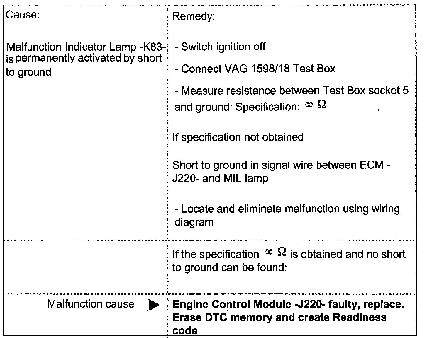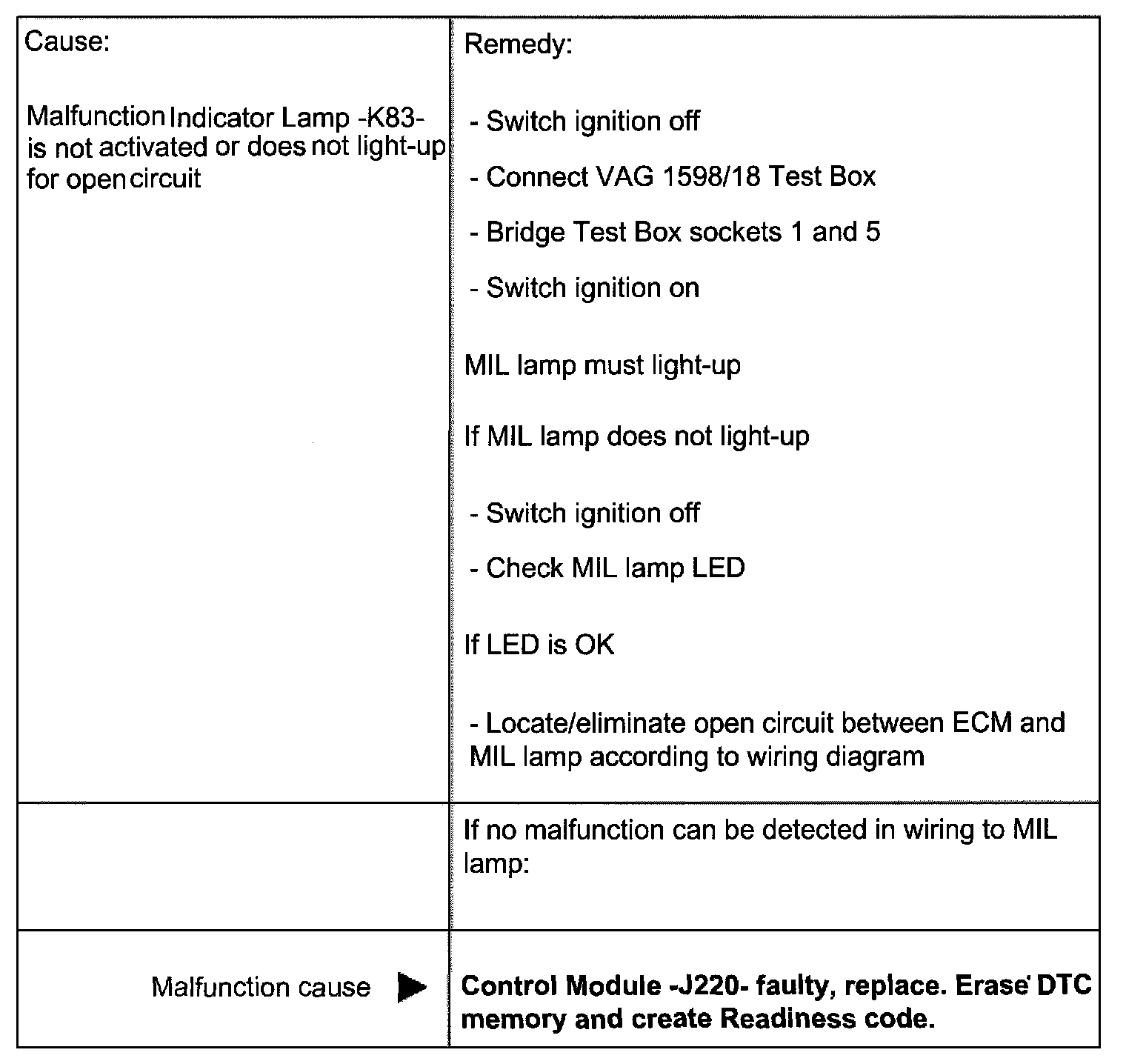 - MIL lamp must go out after a few seconds