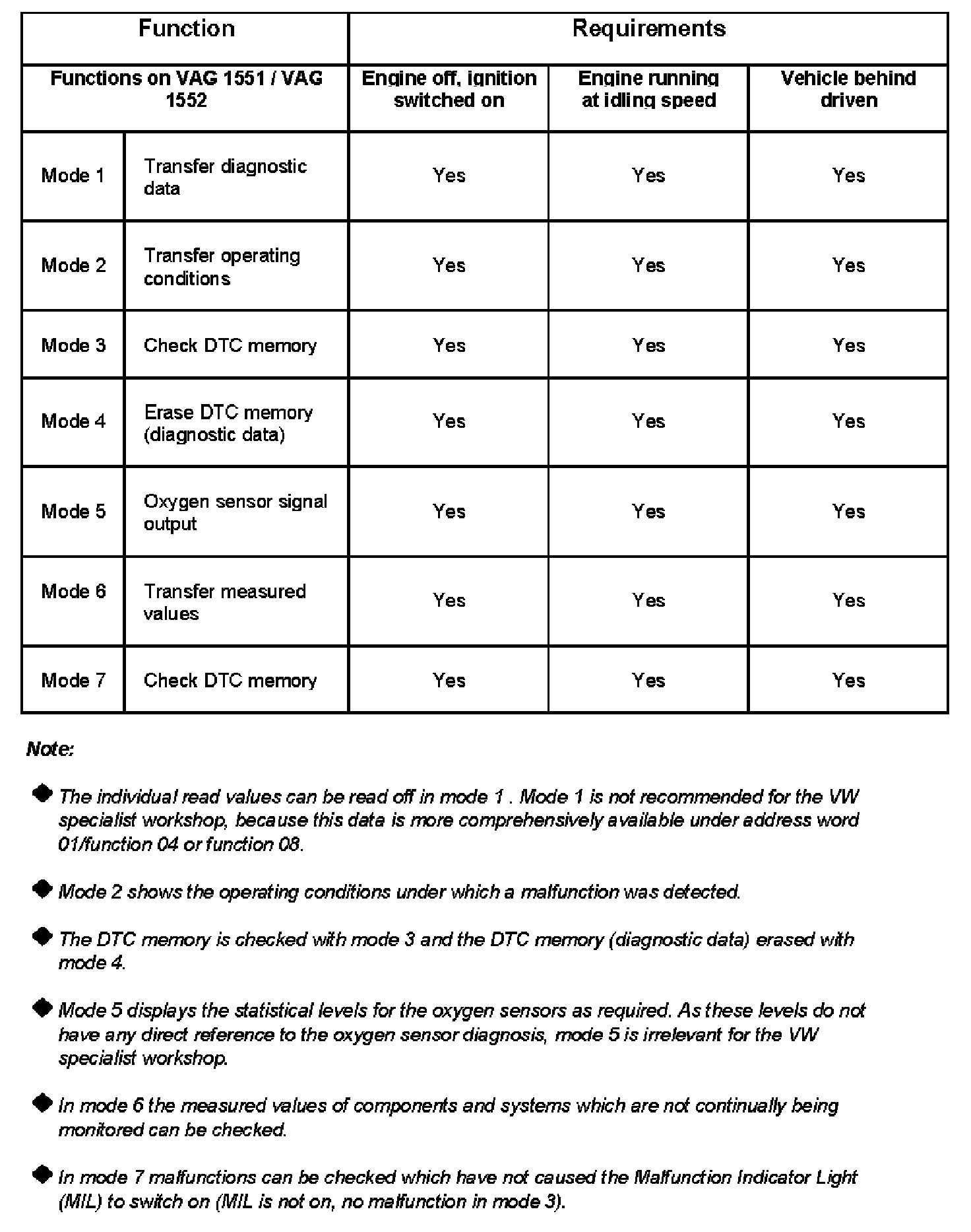 Selectable Functions (Modes) Under Address Word 33, CARB/OBD II