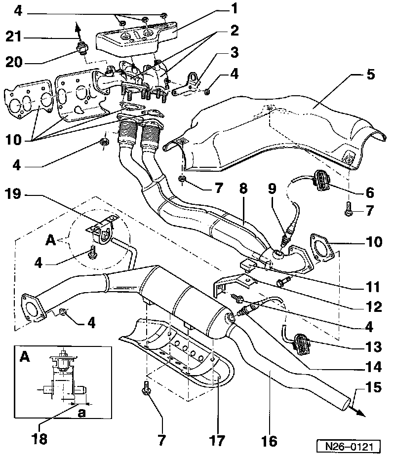 - Align exhaust system longitudinally to maintain dimension -a-.