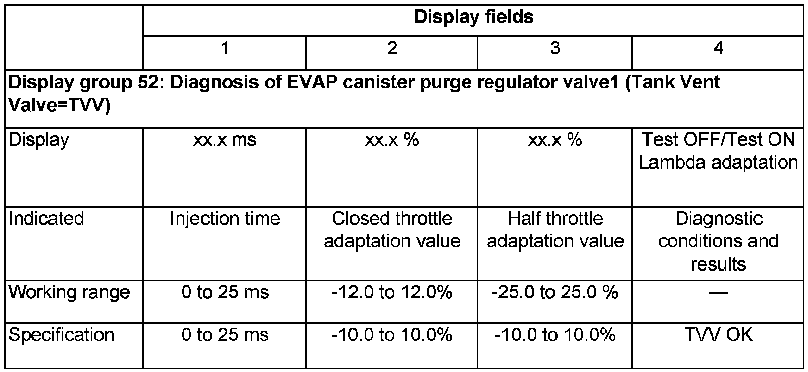 - Allow engine to continue idling until specification "T V V OK" appears in display field 4.