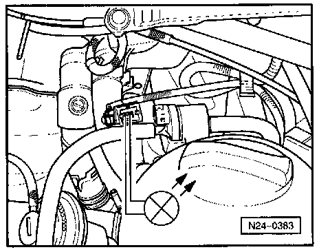 - Disconnect 2-pin harness connector from N112 valve and connect VAG 1527B LED tester to disconnected connector using jumper wires from VW 1594 adaptor kit.