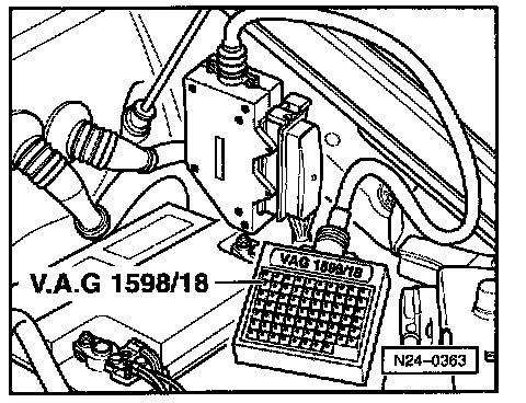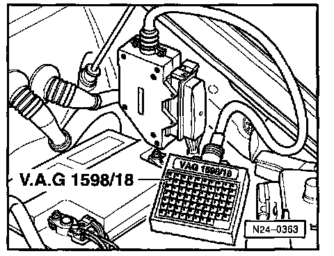- Connect VAG 1598/18 Test Box to ECM harness connector.