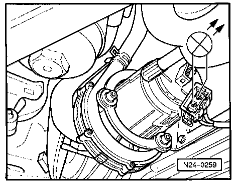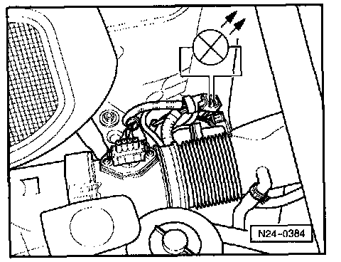 - Disconnect 2-pin harness connector from V101 motor and connect VAG 1527B LED tester to disconnected connector using jumper wires from VW 1594 adaptor kit.