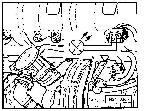 - Disconnect 2-pin harness connector from N80 valve and connect VAG 1527B LED tester to disconnected connector using jumper wires from VW 1594 adaptor kit