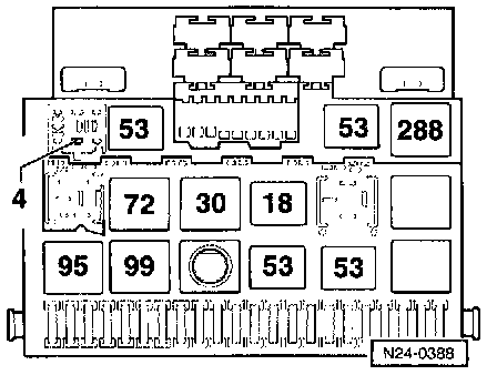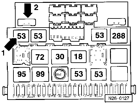 - Remove Secondary Air Injection pump relay (arrow 1) from fuse/relay panel.
