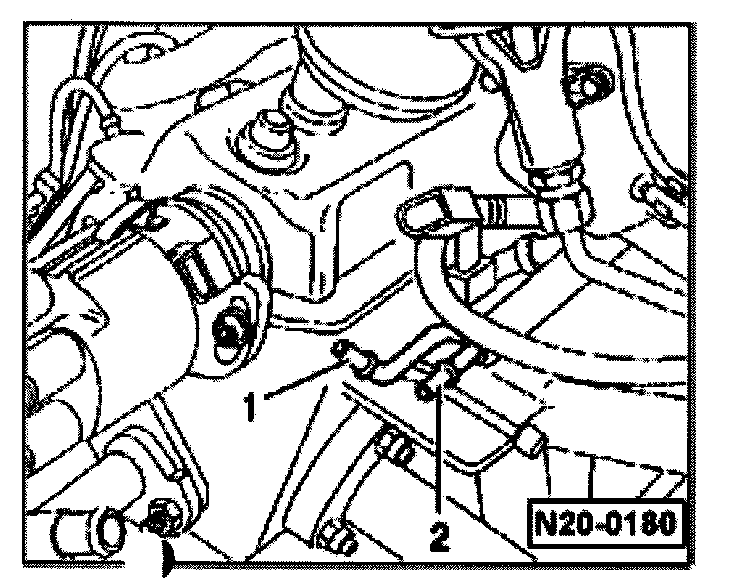 - Connect pressure gauge VAG 1318 to fuel supply line -1- using 1318/10 adapter