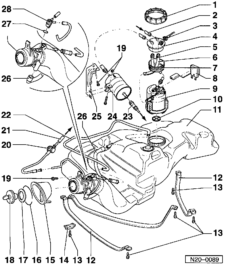 Fig. 1 Fuel delivery unit/Flange, installed position.