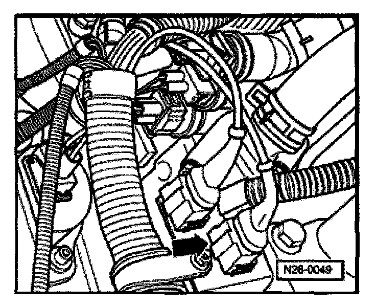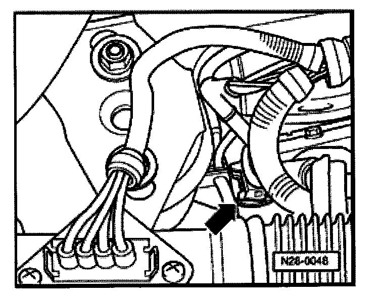 - Disconnect black 3-pin harness connector to knock sensor 2 (arrow).