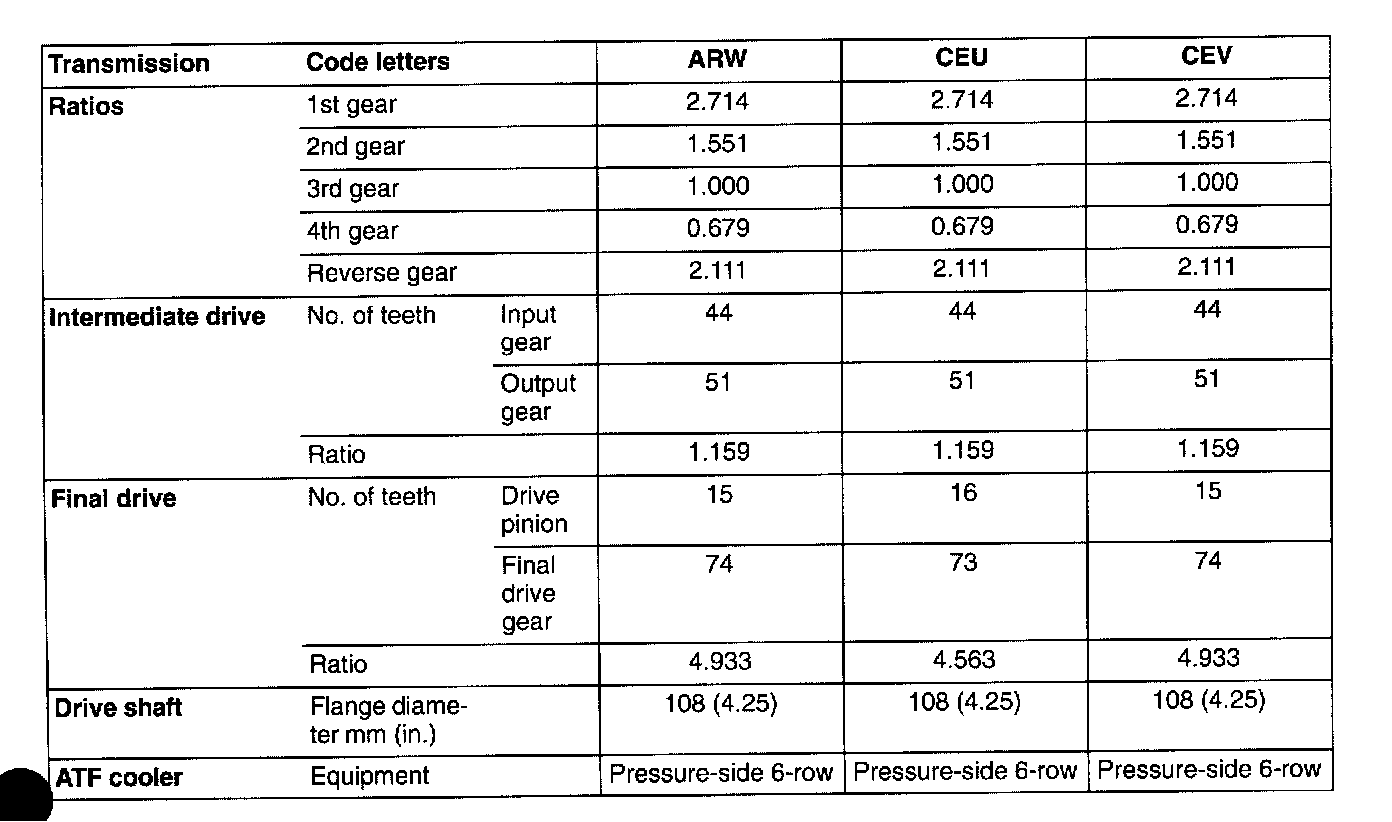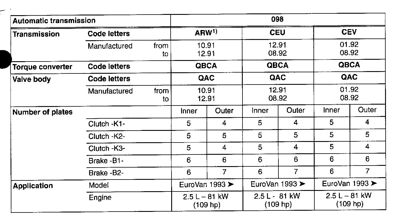 Automatic Transmission Code Letter ARW, CEU, CEV: