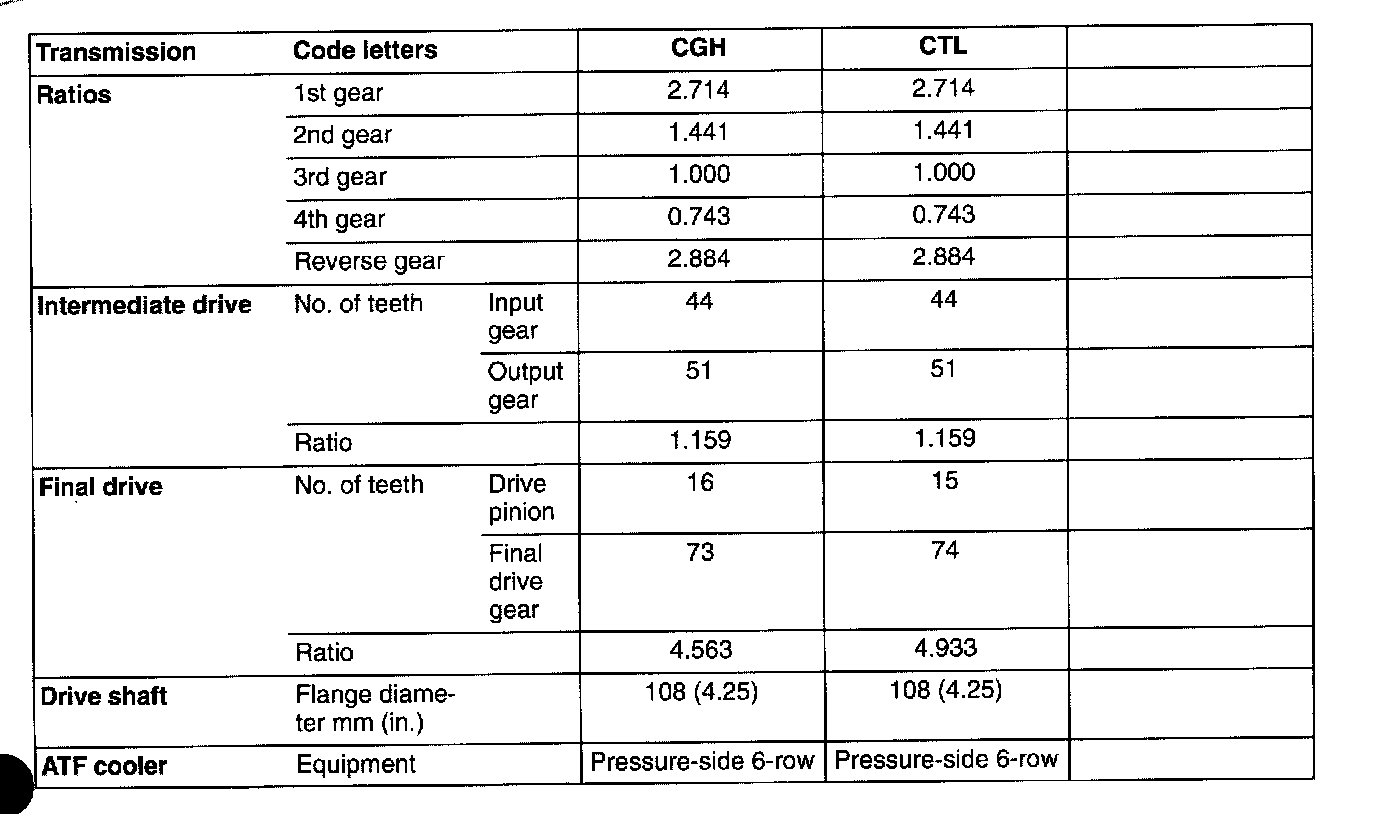 Automatic Transmission Code Letter CFZ, CGA, CGK: