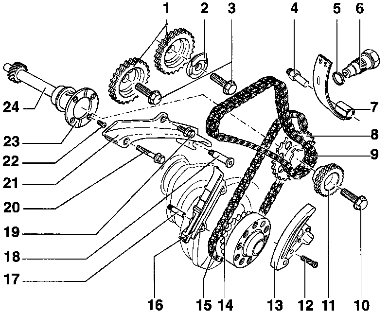 6 Chain tensioner 30 Nm (22 ft lb)