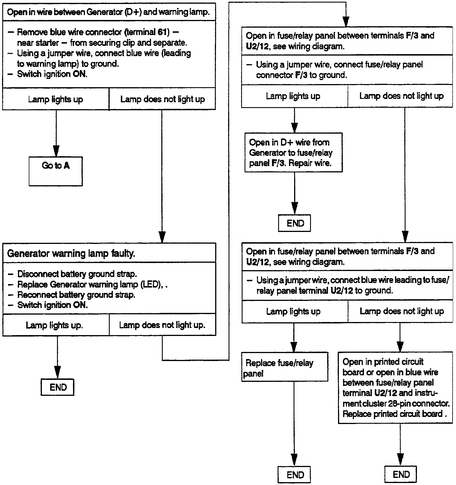 ^ Ground connections (between engine, body and battery) and generator (GEN) connections must be tight and clean (free of corrosion/oxidation).