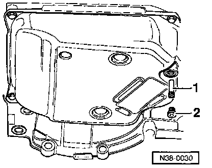 - Remove ATF overflow pipe -1- and plug -2-.