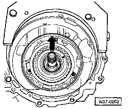 - Pull out large sun gear -arrow-,