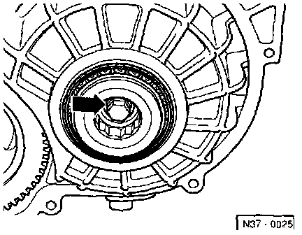- Remove transmission housing cover with gasket -arrows-,