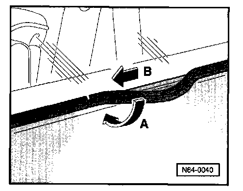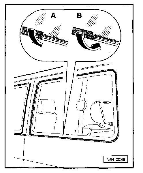 - Place repair molding in middle lower area -arrow A- and fasten along window cutout -arrow B-.