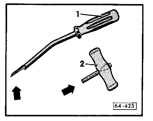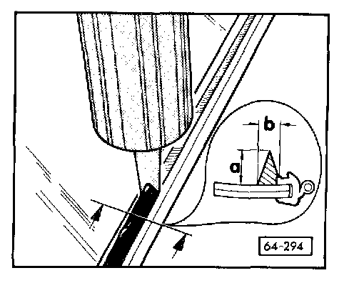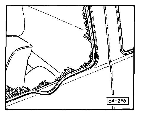 - Push awl (from VAG 1474) through sealing bead from inside vehicle.