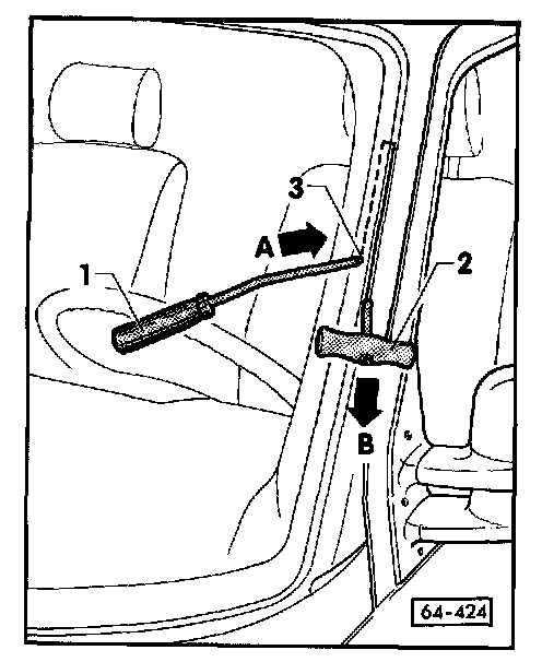 - Fasten cutting wire with wire ends on bracket -1- (inside vehicle) and handle -2- (outside vehicle).