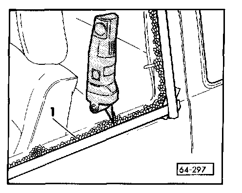 - Cut off adhesive sealing compound -1- (with glass residue) using electric cutting tool VAG 1561, or equivalent, and knife blade VAG 1561/9 (with stop roller).