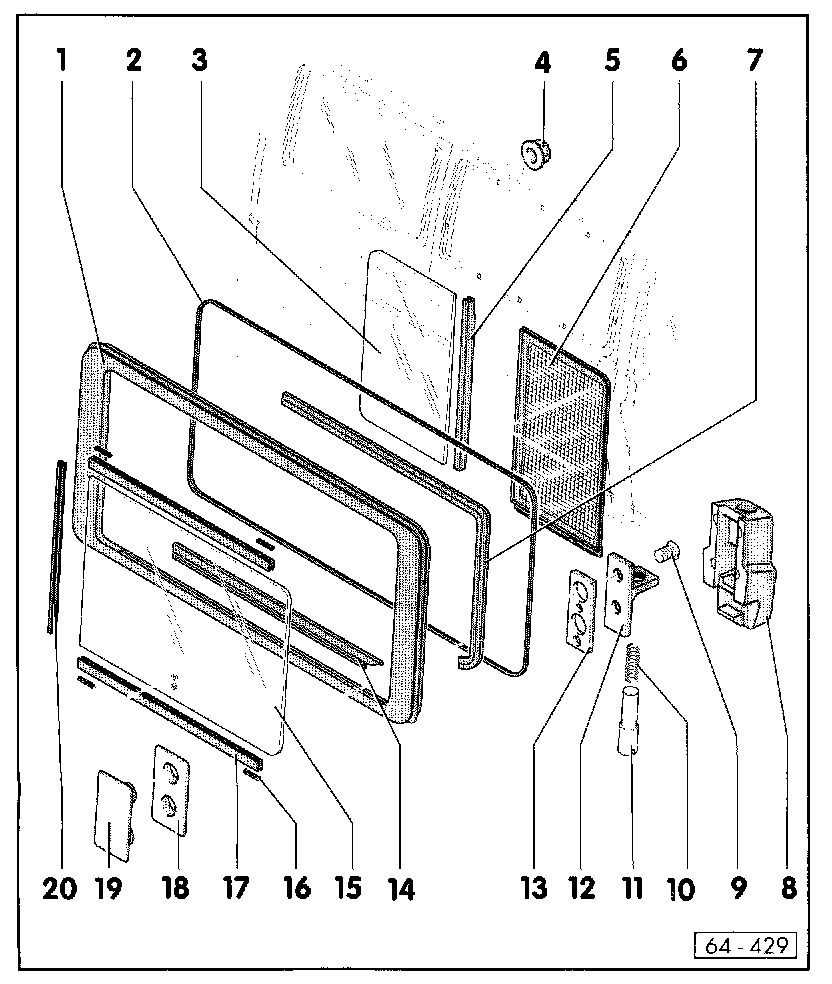 - Glued in with silicone adhesive sealing material (black) AMV 176 000 Os or equivalent