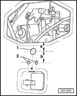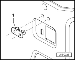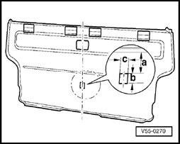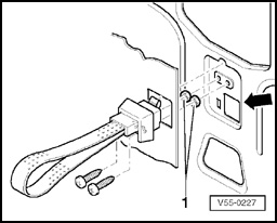 NOTE: On tailgates with large inner sheet metal recesses (arrow), two additional spacers, 5.0 mm (0.19 in.) height (e.g. nuts M6 - 1 -) are placed underneath for height adjustment