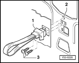- Hook strap - 1 - with locking tab in upper hole - 2 -, fasten with fillister screws - 2 -.