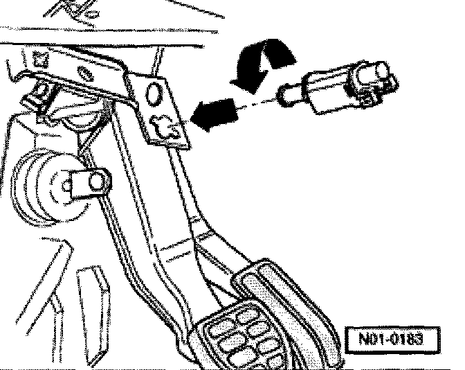 ^ Guide brake light switch through assembly hole and re-install by rotating 90° toward right.