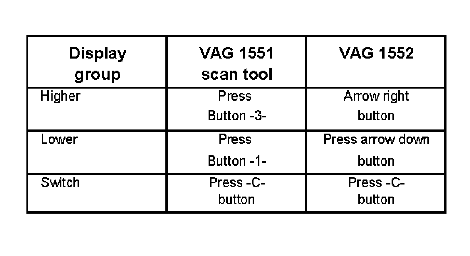 - Input address word 17 "Instrument cluster" and then press -> button until "Select function XX" is shown in display.